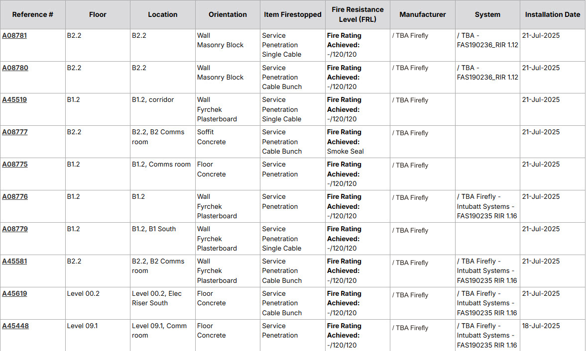 A good AS 4072.1 register isn’t just a spreadsheet with a few hole sizes and product names. It’s a full record of what’s been installed, where, how, and by who - so anyone down the track can pick it up and immediately understand the firestopping story of that building.