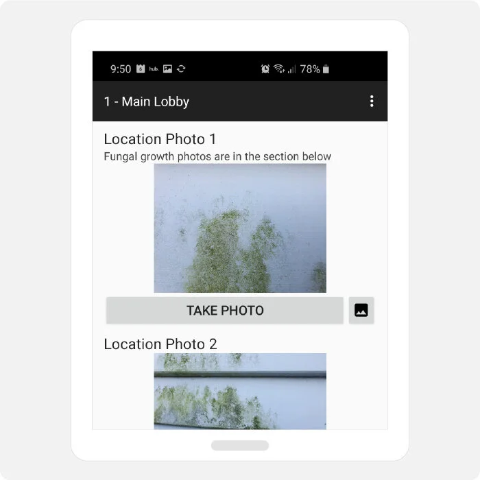 Clarinspect improves the field information gathering (samples and observations) and then compiles your Word or PDF report for you with all photos put in the correct places, sized and formatted ready for you to tweak the report with the benefit of your expertise.